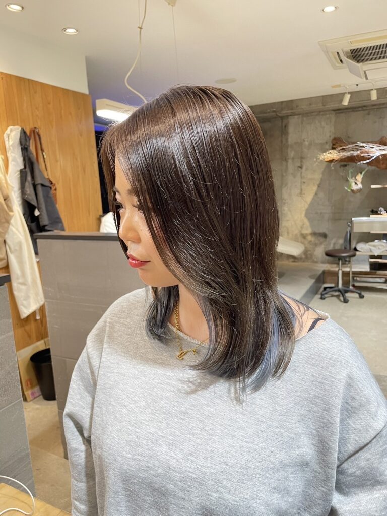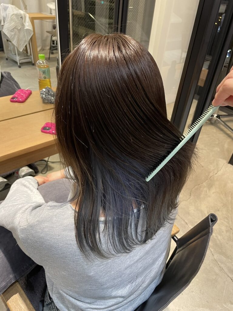 そんな方におすすめのカラーが、今回ご提案した ネイビーブルーのインナーカラー です。鮮やかすぎない落ち着いた色味で、上品さと透明感を両立できます。