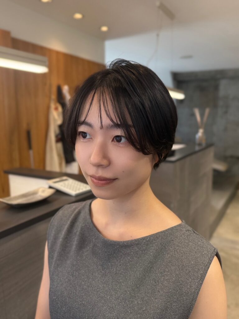 「もっとすっきりと、首元がきれいに見えるスタイルにしたい」というご要望をいただき、今回は思い切ってショートにチャレンジすることに。