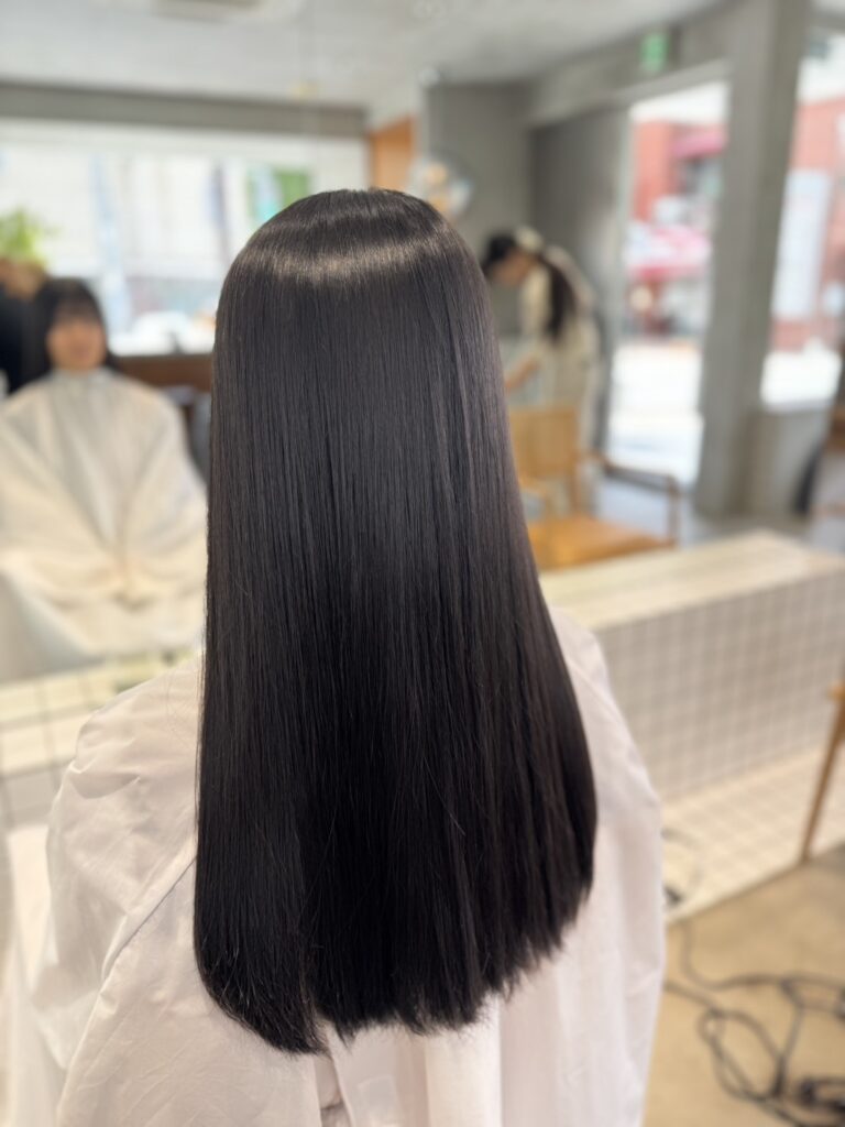 カウンセリングで髪の履歴を確認すると、ストレートの施術を繰り返すとダメージが蓄積する可能性がありました。