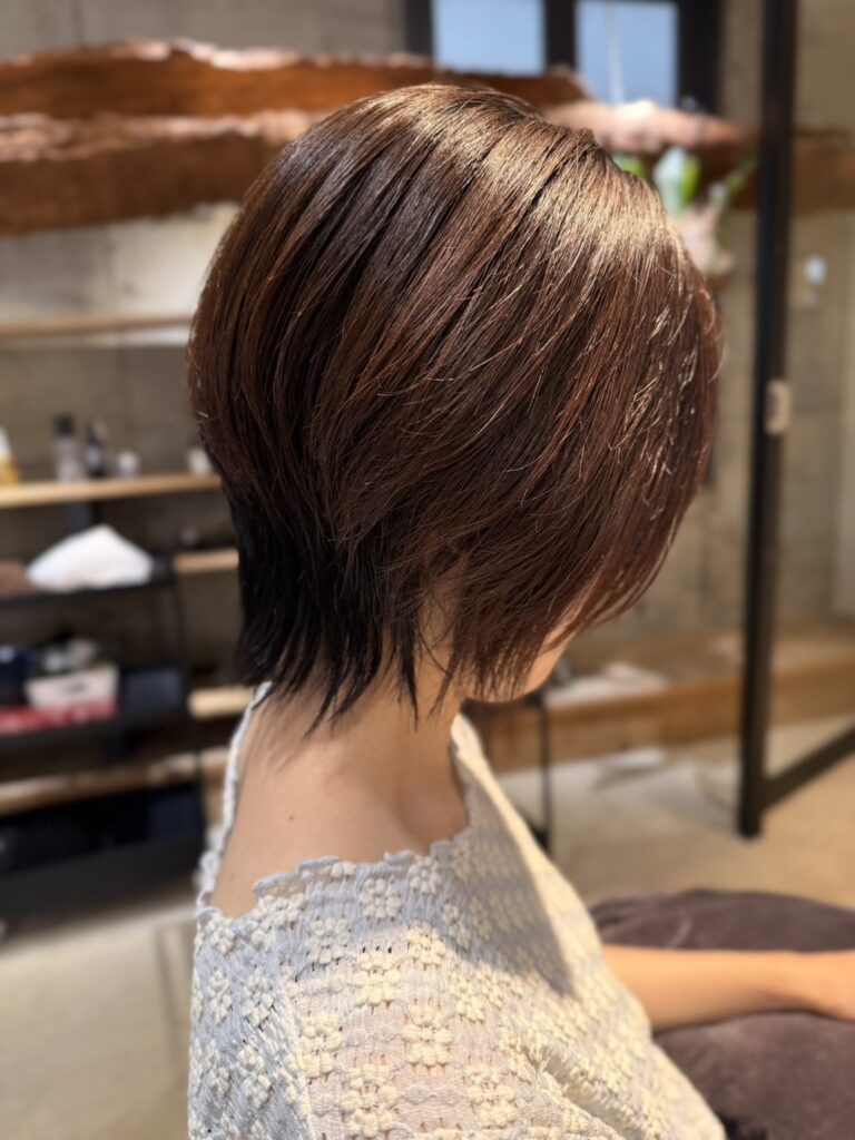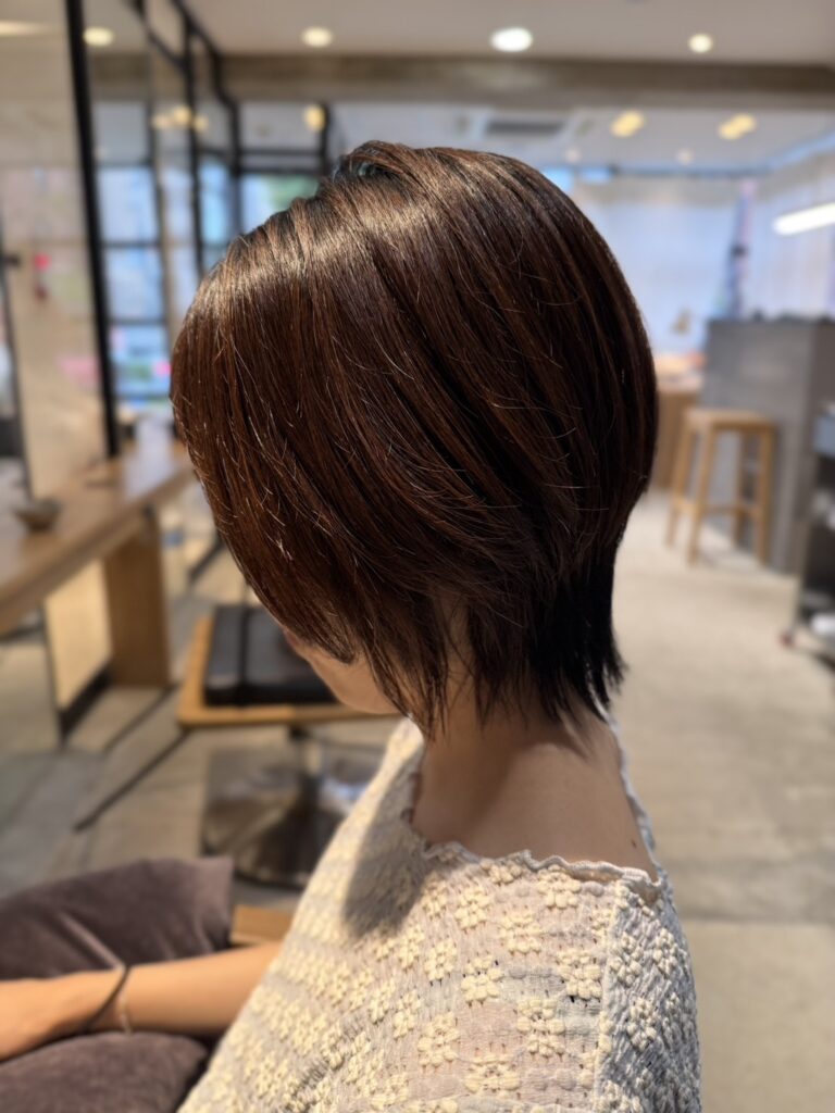重く見えやすい髪質でも、まとまりやすく軽やかな印象に。 - 扱いやすいウルフシルエットを提案