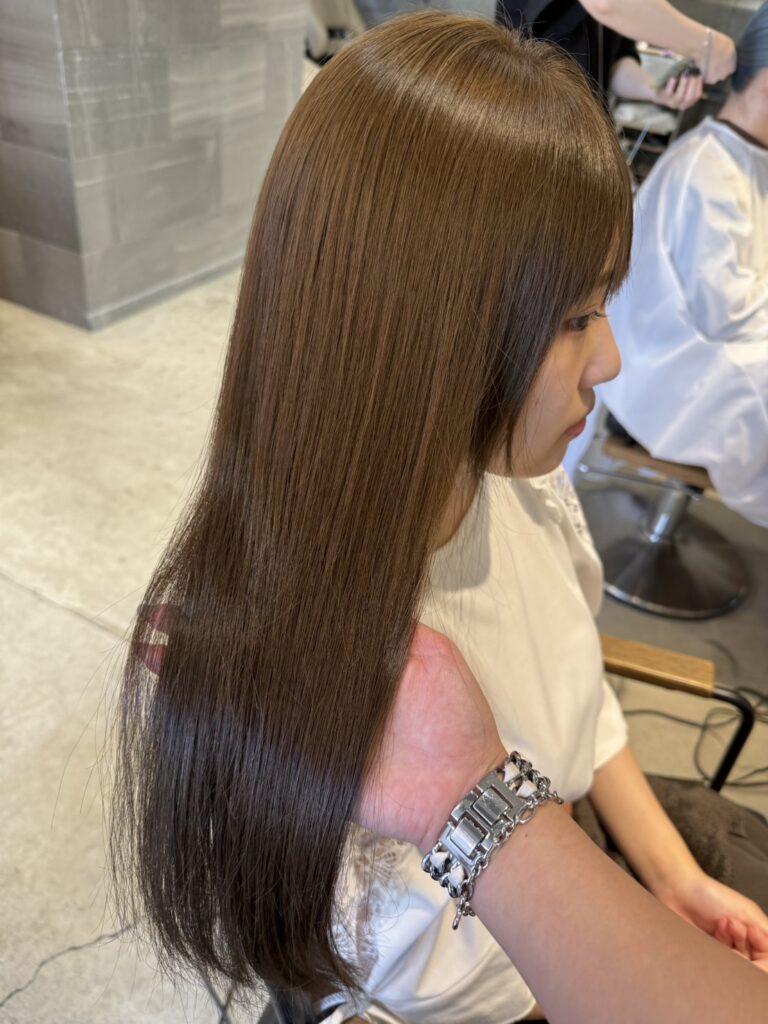 髪質改善ストレートを施術した結果、髪はしっとりとまとまり、まるで別人のような艶髪に。