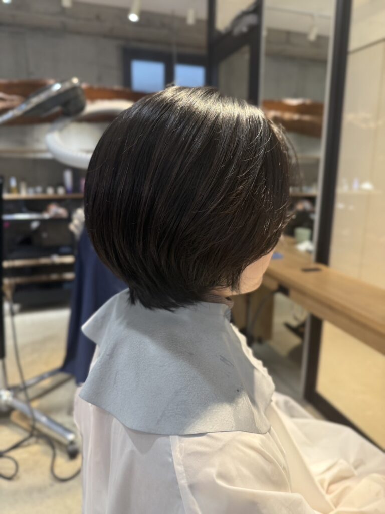 ショートやボブのカットでは、数ミリの長さや毛量調整で大きく印象が変わります。