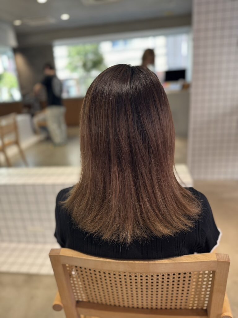 「ブリーチ部分が明るくなってパサついて見えていたのが、しっとりツヤのあるカラーになって嬉しい!」