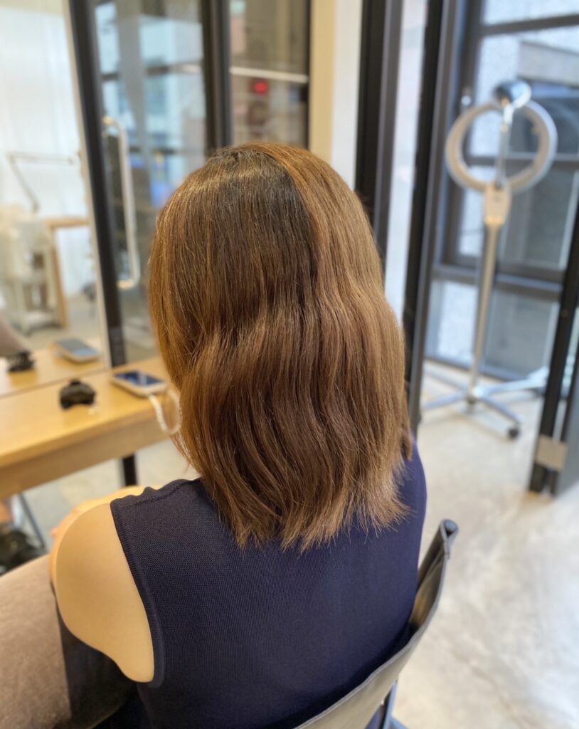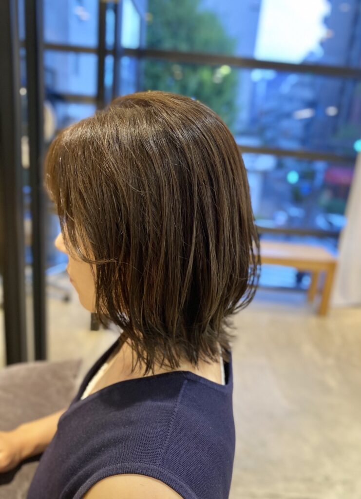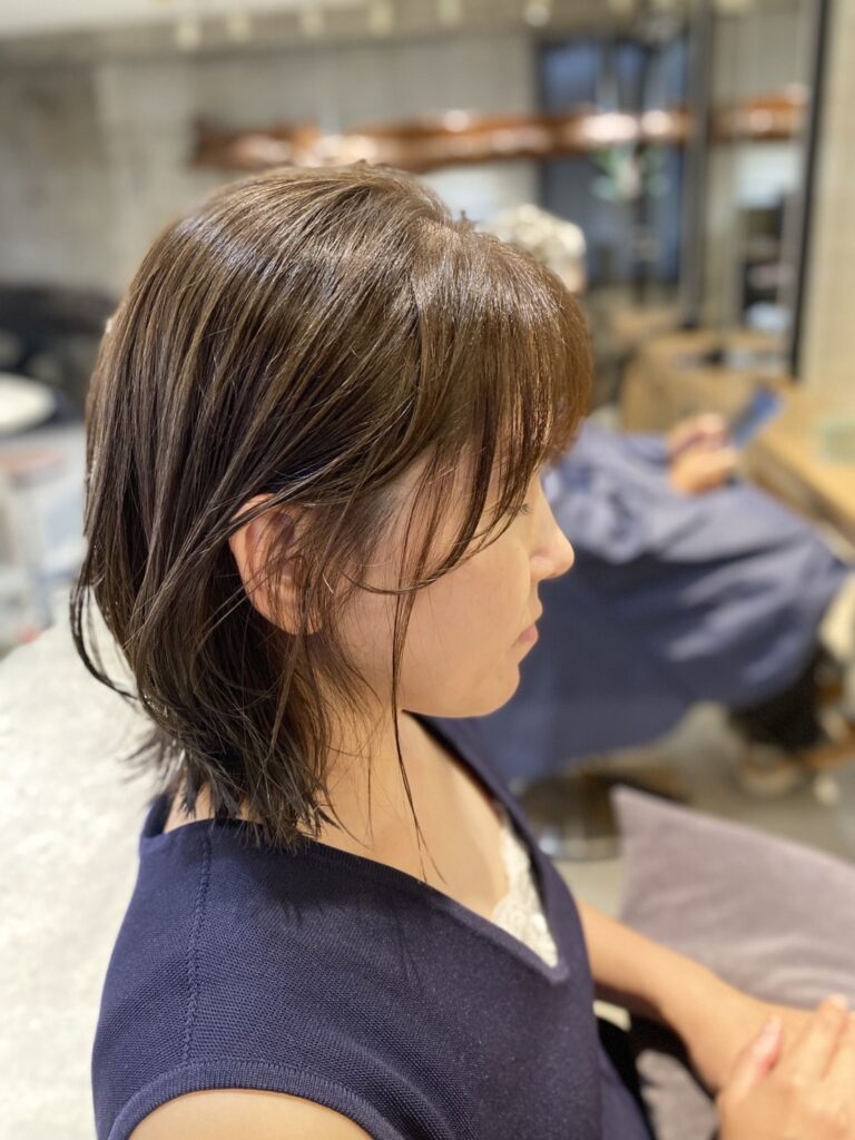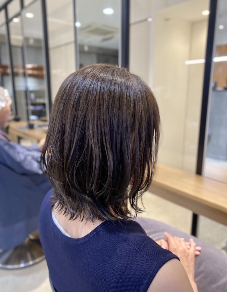 - ツヤ感のあるブラウンカラーで髪全体が柔らかく女性らしい印象にチェンジ