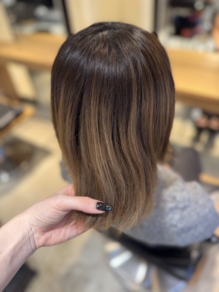仕上がりは乾かすだけで自然にまとまる艶髪。お客様からも「手触りが全然違う!」「毎日のお手入れが楽になりそう」と喜んでいただきました。