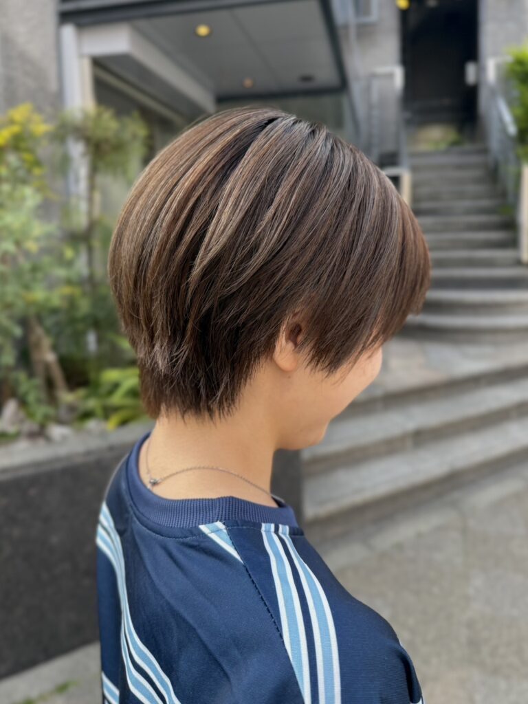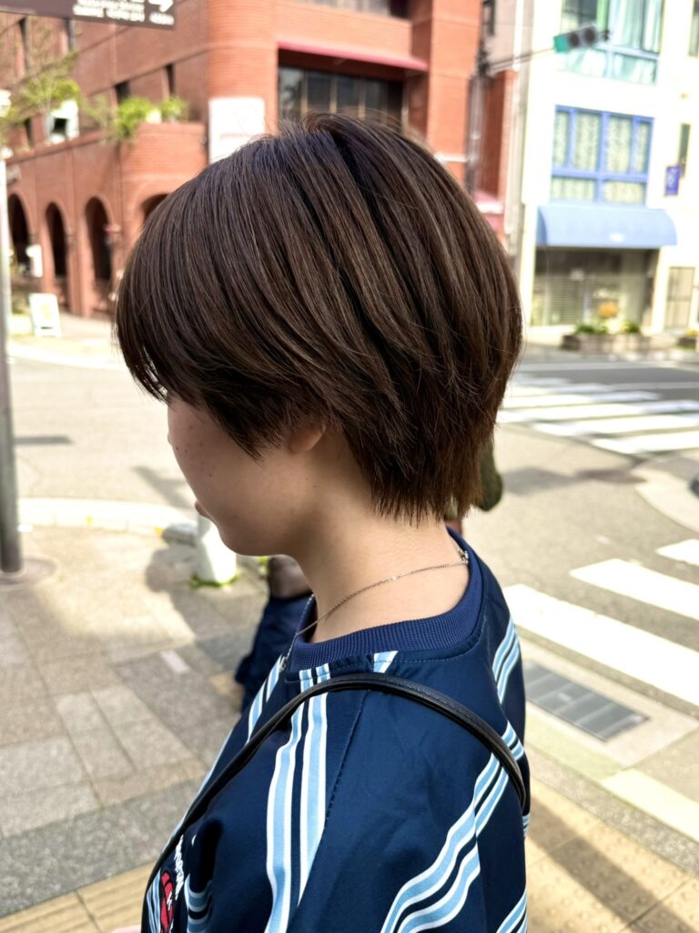 「他店でハイライトを入れたけれど、色落ちが気になってどうしていいか分からない」というご相談は非常に多いです。 ベースの明るさを活かしながら色味を補正することで、暗くしても透明感のある綺麗なカラーを楽しめます。 また、ショートヘアは襟足の収まりと後頭部の丸みが命です!骨格に合わせた似合わせカットが得意ですので、ショートでお悩みの方はぜひhanaにお任せください。