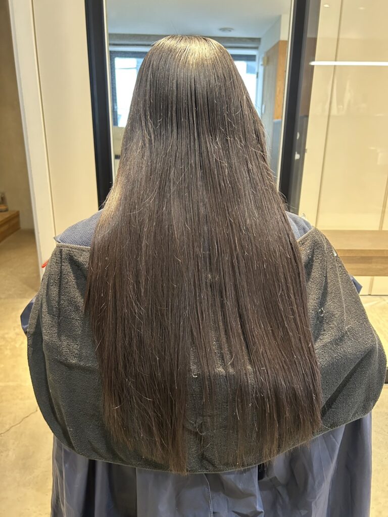 今回のメニューは**【カット+カラー】**です。 「暗いのに重くない」という絶妙な質感をカラーとカットの両方からアプローチして作りました。