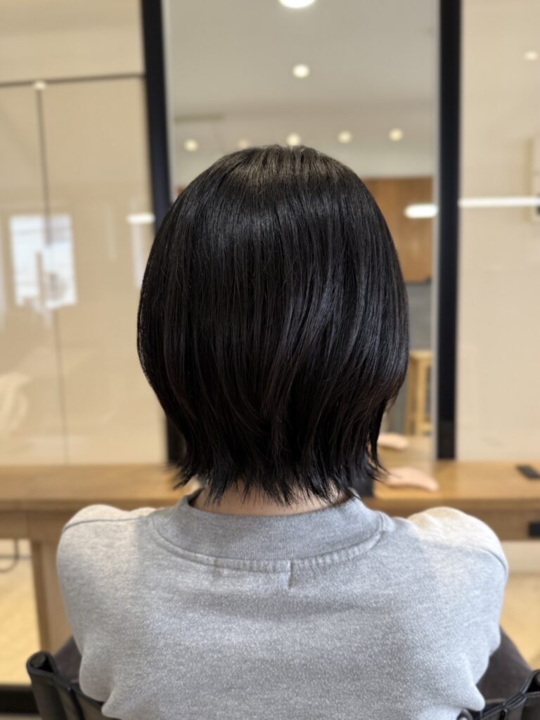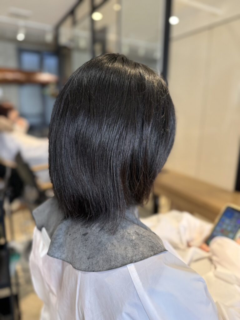 今回のメニューは**【カット】**です。 ボブのまとまりの良さを活かしながら、軽やかさを出すための工夫を凝らしました。