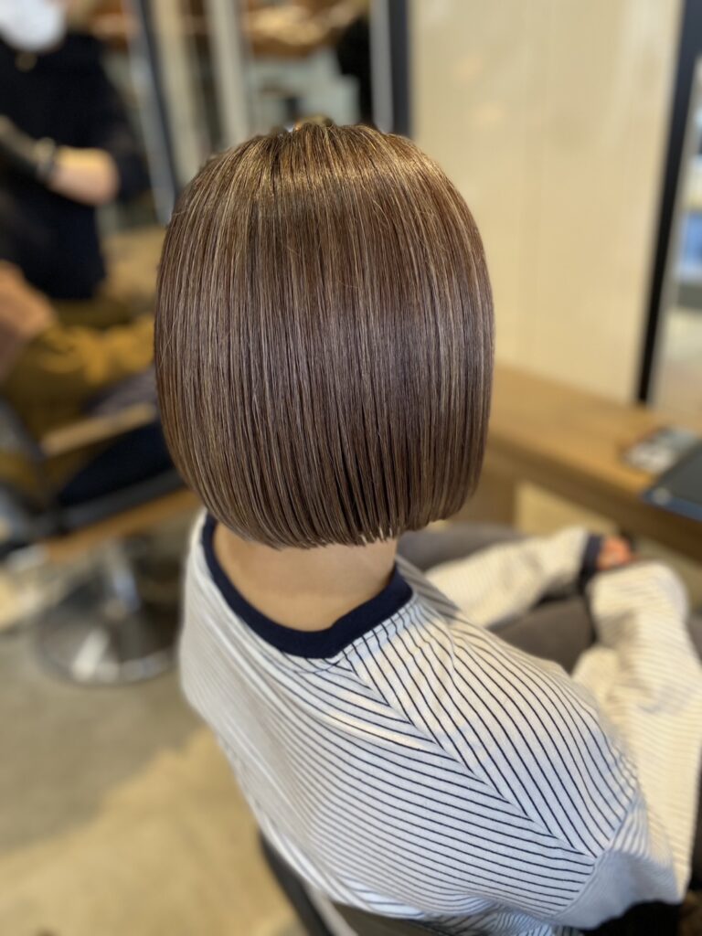 「白髪染め=真っ黒」ではなく、ハイライトを細かく入れることで、好きな明るさを楽しみながら白髪をぼかすことができます。 また、クセ毛さんのボブは、お客様が「扱いやすい」と感じる重さを残しつつ、いかに内側でボリュームを削るかが勝負です。 毎朝のスタイリングにストレスを感じている方は、ぜひMIYUKIにご相談ください!