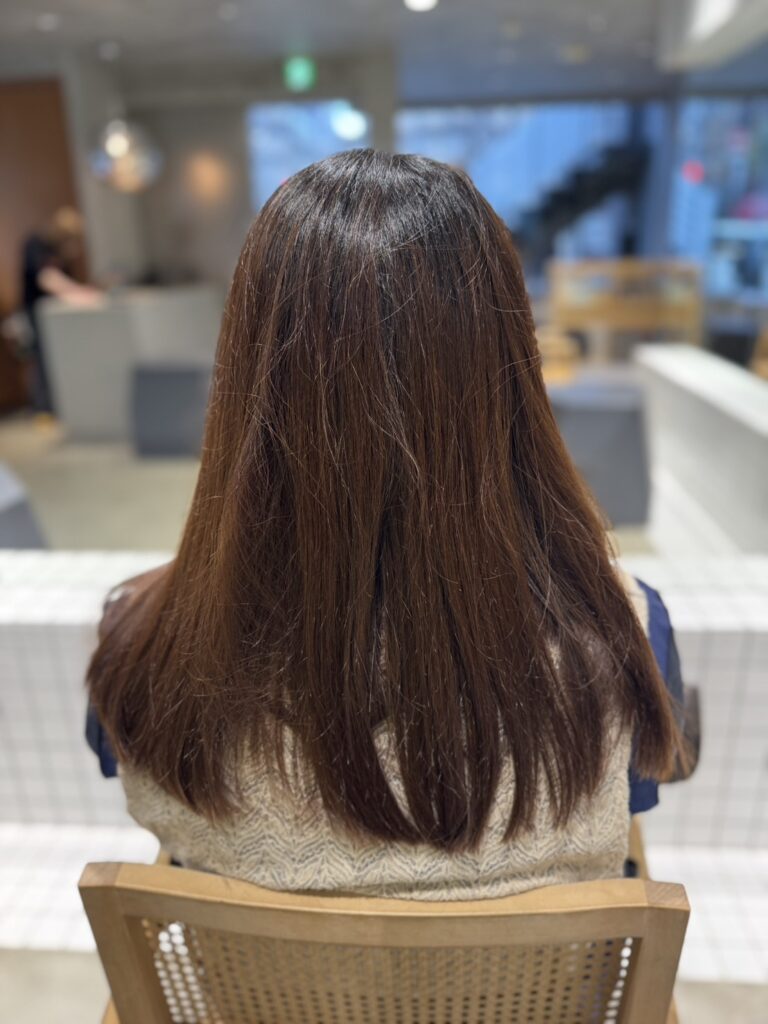 今回は、久しぶりにカラーをされるお客様のビフォーアフターをご紹介します。 「明るくしたいけど、アッシュ系の綺麗な色味も出したい…」というご相談です。 実はこれ、日本人の髪質だとブリーチなしでは少し難しいオーダーなのですが、今回は工夫して理想の色味を作りました!