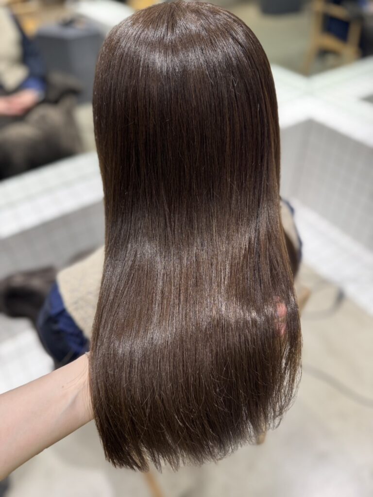 「明るくしたい」「アッシュにしたい」というご要望の中で、どちらを優先すれば一番可愛くなるかをプロの視点で判断します。 また、その場限りではなく、**「数ヶ月後、次にカラーをする時」**のことまで考えて薬剤を選定しています。 久しぶりのカラーで迷っている方は、ぜひ柳川にお任せください。