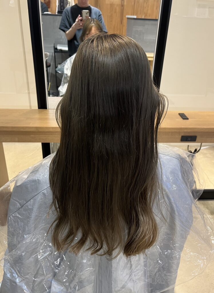「伸ばしていきたい」というご希望を最優先に、長さは大きく変えませんでした。 毛先を少し整えて髪の厚みを出すことで、まとまりが良くなり、スカスカせずに綺麗に伸ばしていきやすい状態を作りました。
