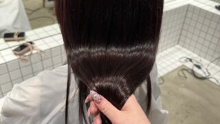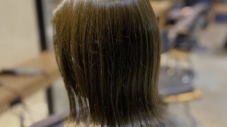 バッサリ切りたいけど結びたい方へ。スタイリストMIYUKIが、肩につく長さの切りっぱなしボブをご提案。レイヤーなしで結びやすく、アイロンだけの簡単スタイリングに。カラーは明るめオリーブでオレンジ味を消し、脱マンネリを叶えました。神戸三宮211へ。