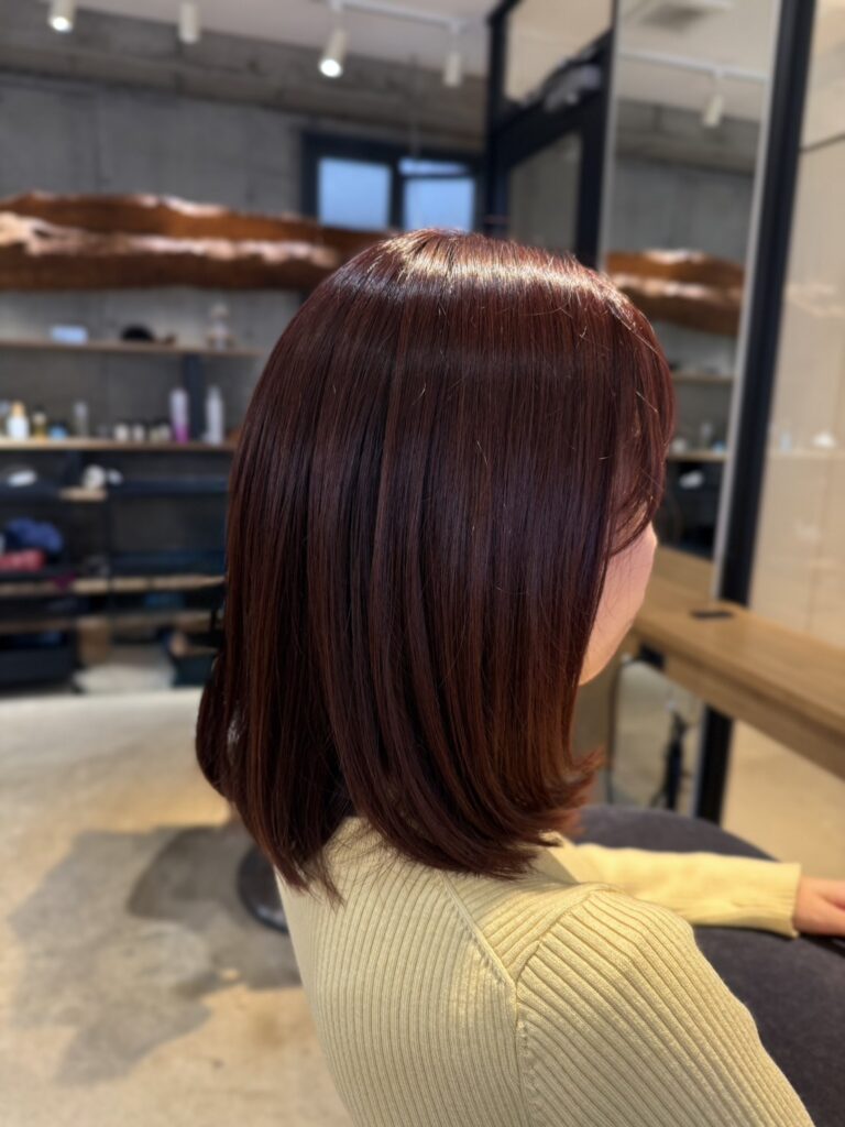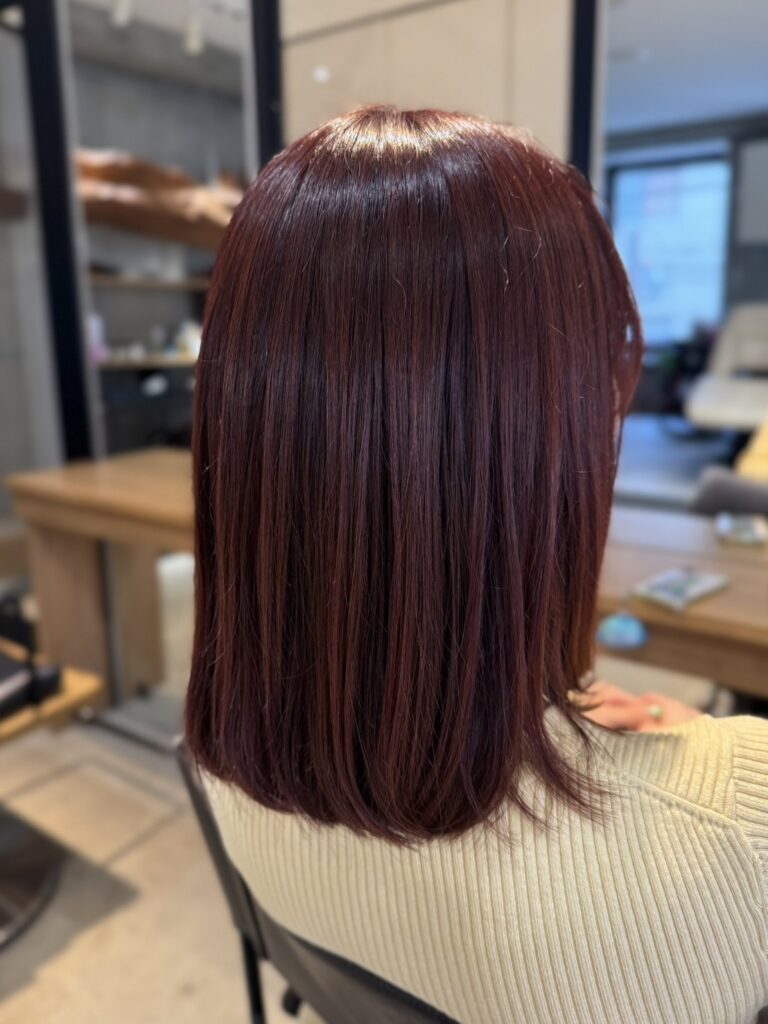 - 根元から毛先まで色ムラのない、統一感とツヤのある仕上がり!
