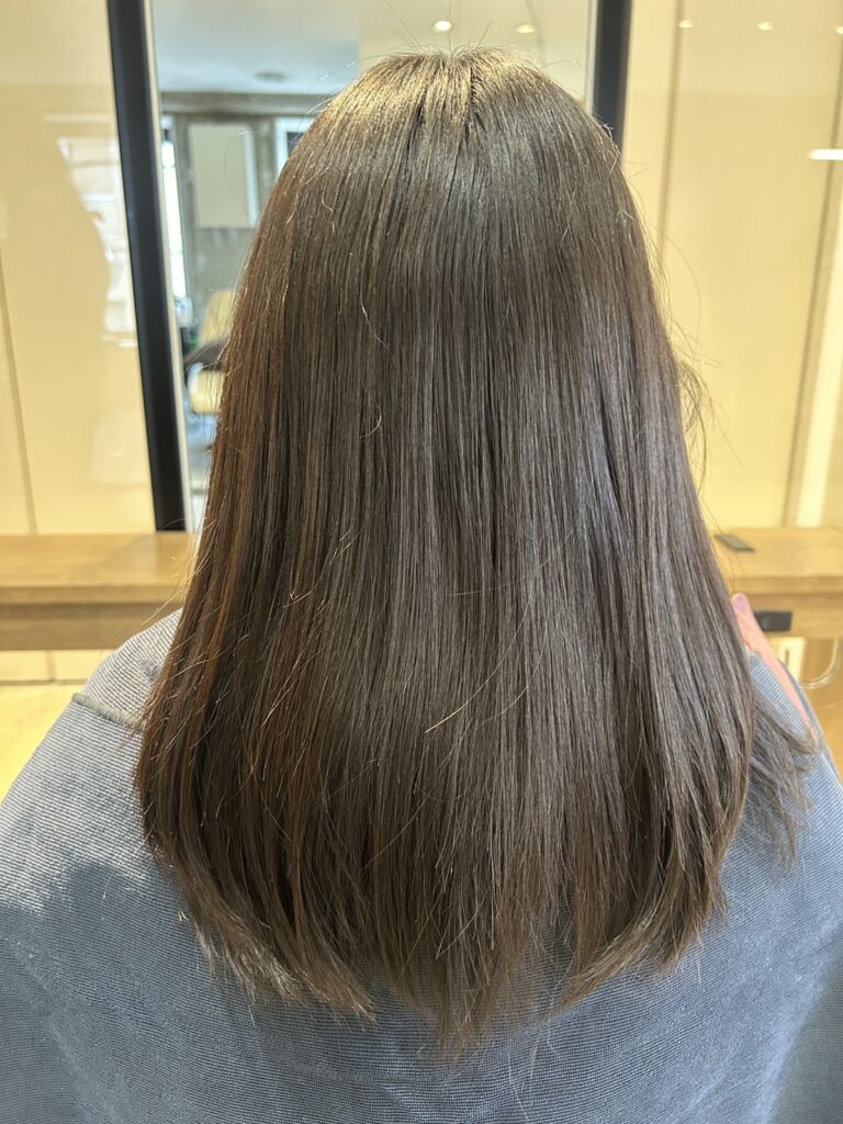 今回のメニューは**【カット+カラー】**です。 「ご自宅で、ご自身で、簡単に再現できること」を最優先に施術を行いました。