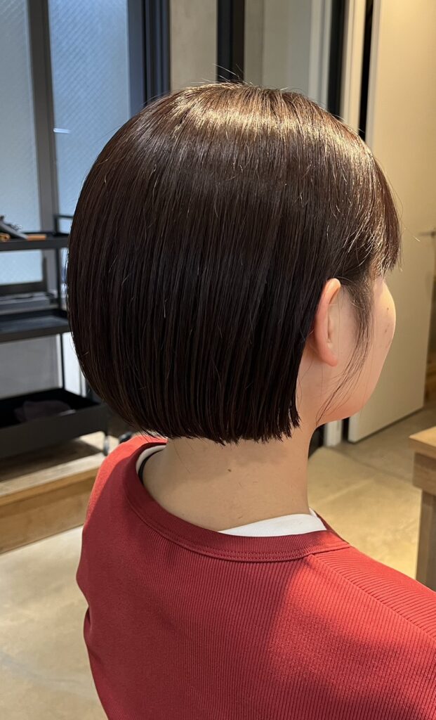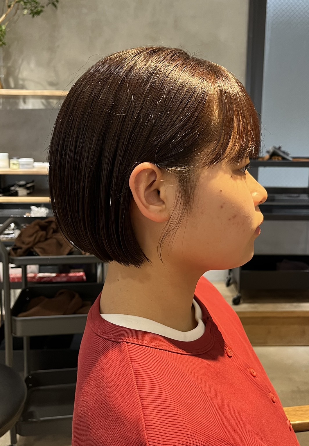 「髪が跳ねてまとまらない」というお悩みは、カットの長さを数センチ変えるだけで劇的に改善されます。 特にミニボブは、骨格を綺麗に見せつつ首元をスッキリ見せてくれるので、これからの季節にもおすすめのスタイルです。 また、艶を重視したブラウンカラーは、お肌の色を綺麗に見せてくれる効果もあります。自分に似合う短めスタイルを探している方は、ぜひ宇野にご相談ください。
