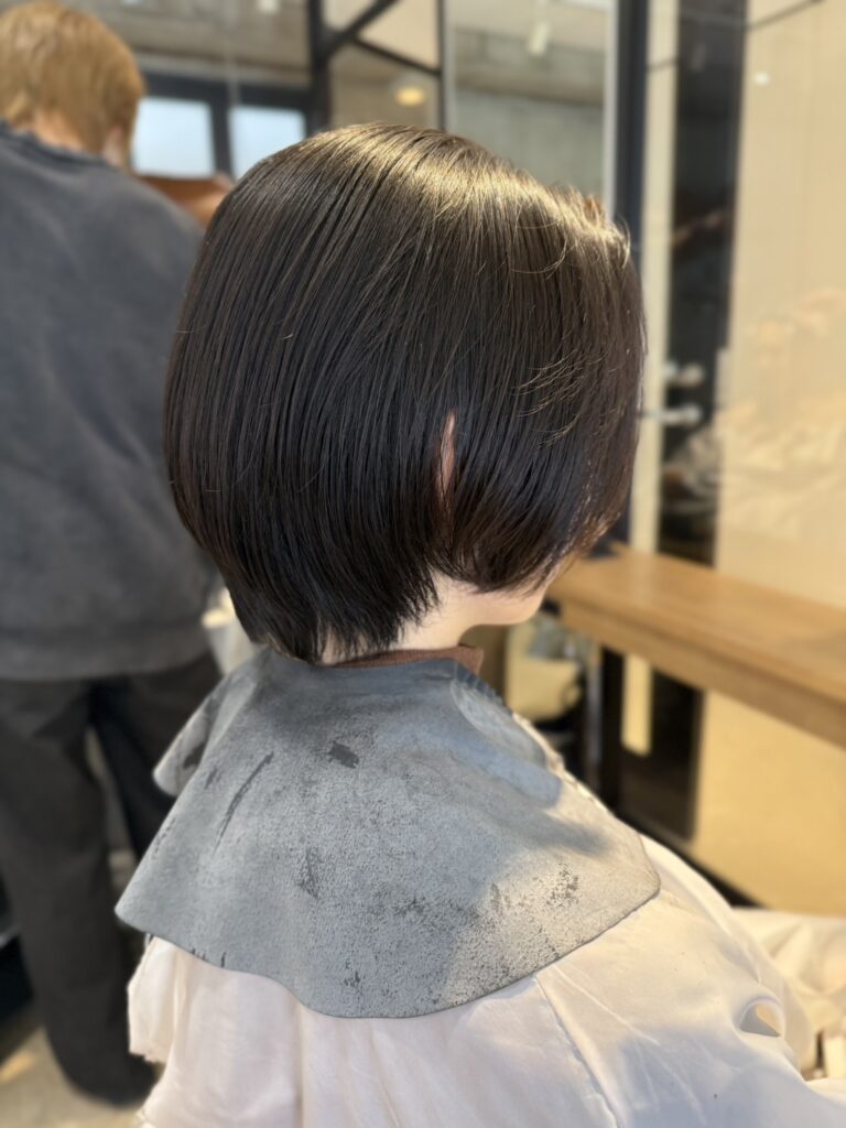 お客様の「サイドの長さを変えたくない」というご要望を活かしつつ、後頭部の丸みと全体の軽さを出すカットをご提案しました。