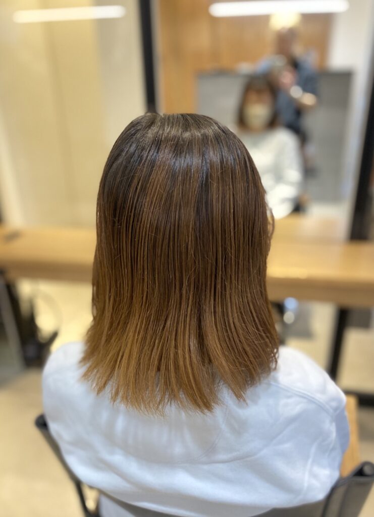 久しぶりのご来店で、伸びてしまった髪をスッキリさせつつ、持ちの良さも重視されていました。