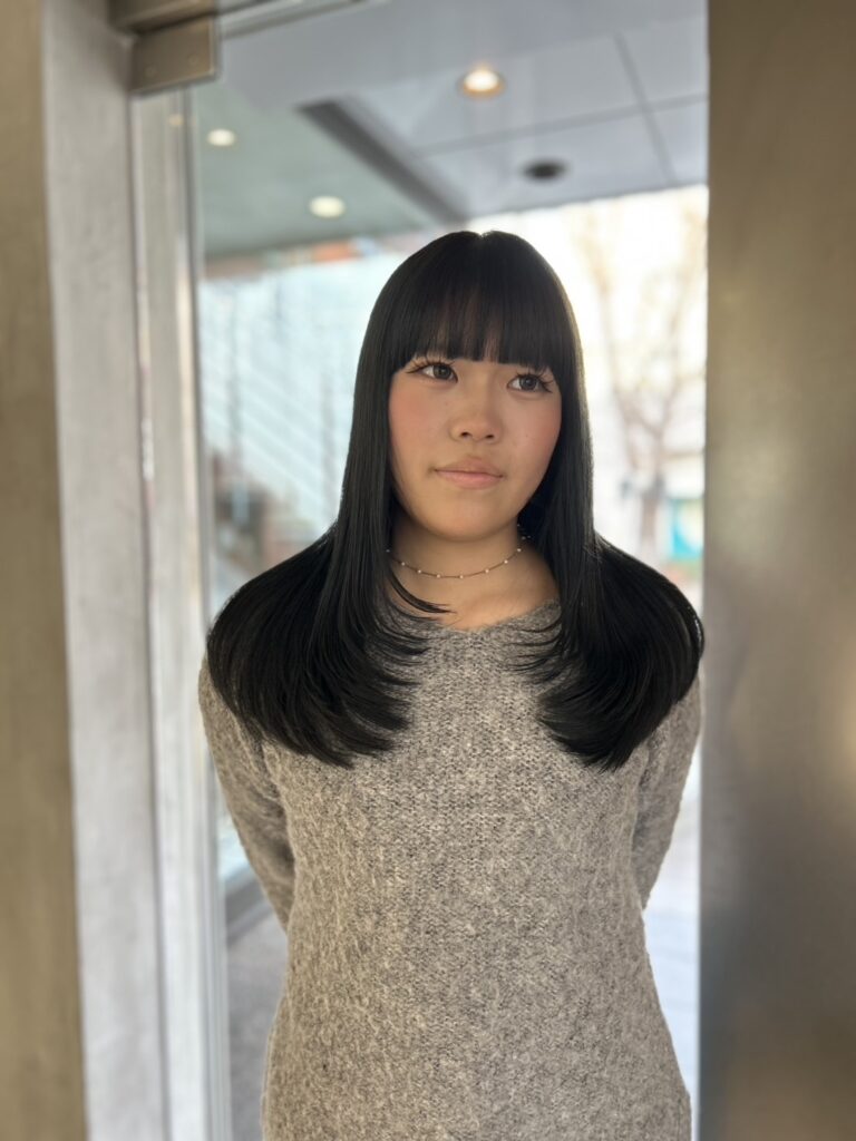 ダメージが気になる場合、**「厚みを残すこと」**がツヤ髪への近道です。スカスカにせず、必要な重さを残しながらレイヤーを入れることで、傷んで見えない動きのあるスタイルが作れます。髪のメンテナンスはぜひお任せください。