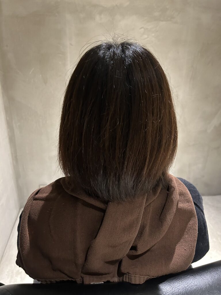 お客様からは「首が細く見える!」「軽いのにパサパサしてなくて、まとまりが良いです」と喜んでいただけました。