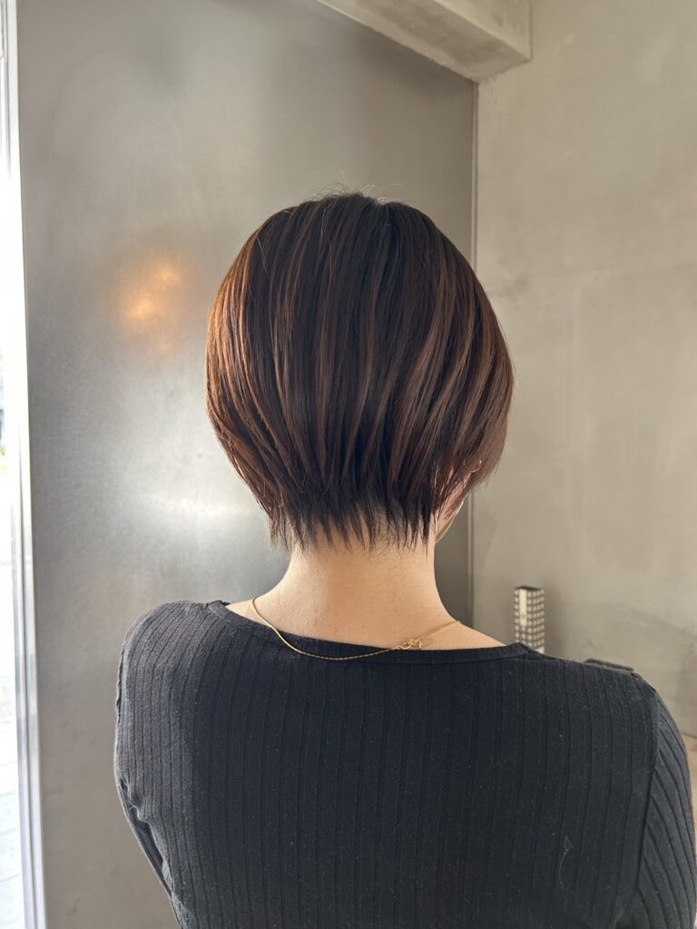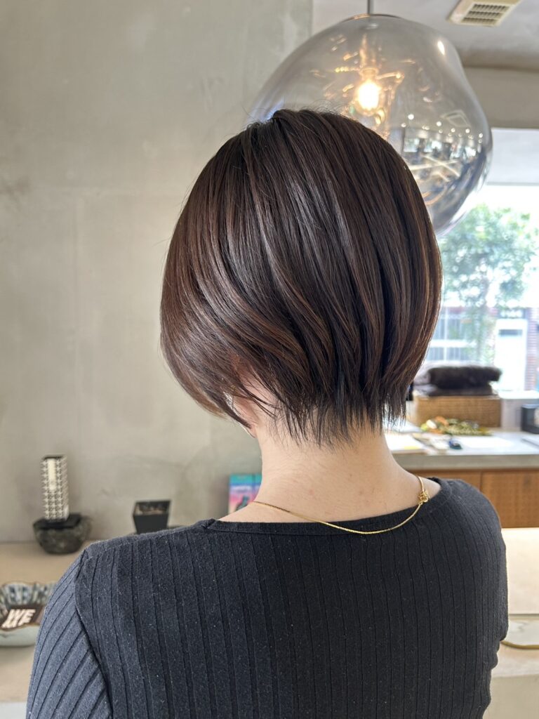 今回は「ショートボブにしたいけど、後ろ姿が重くなるのが悩み…」というお客様のビフォーアフターをご紹介します。 首元をすっきり見せつつ、女性らしい丸みを残すシルエット作りのご提案です。