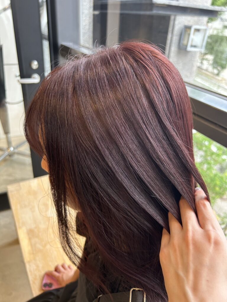 「暖色は初めて」「赤は似合うか不安」という方でも、薬剤の配合次第で肌に馴染む挑戦しやすいカラーになります。派手になりすぎず、でもしっかり印象に残る。そんなあなただけの似合わせカラーをご提案します。