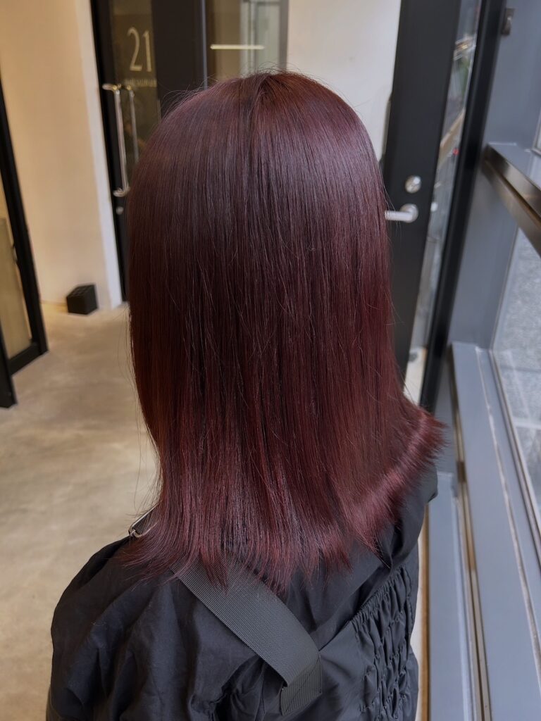 ✂️ 派手すぎない「大人の赤」!黄ばみ消し深みピンクで叶える極上のツヤ髪|211 馬場