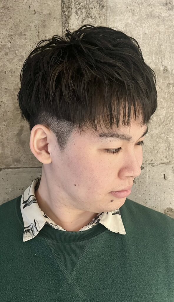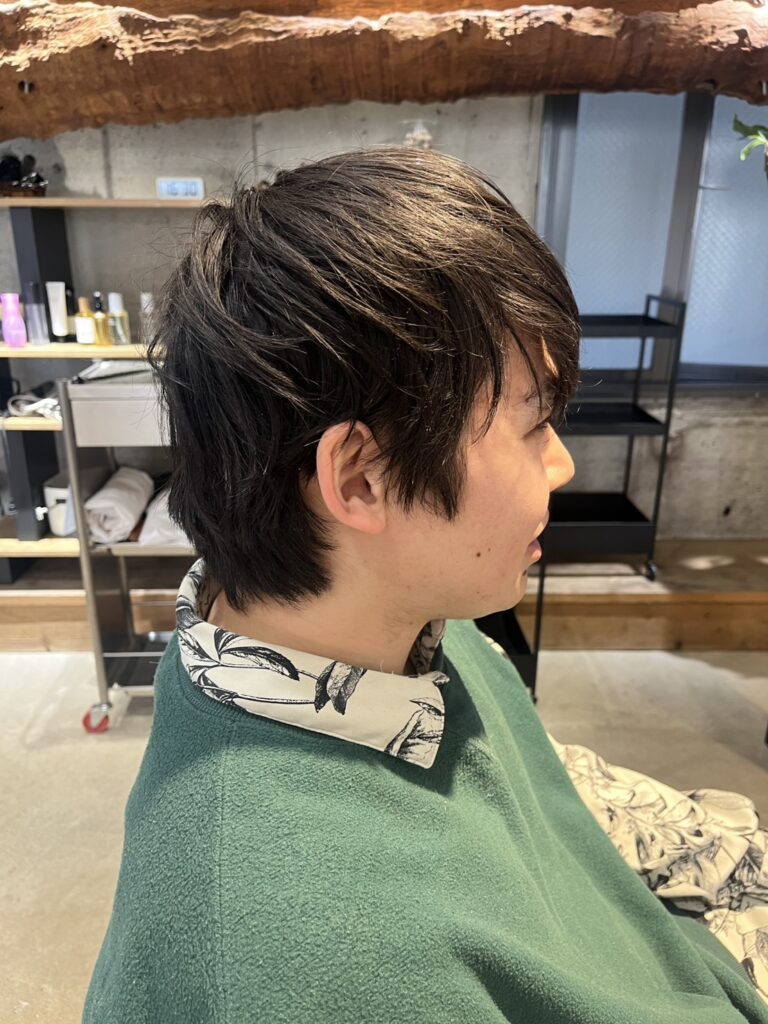 今回のメニューは**【カット】**です。 メンズカットは「いかにご自宅でのセットを簡単にするか」が鍵になります。ベースの形と量感をしっかり整えました。