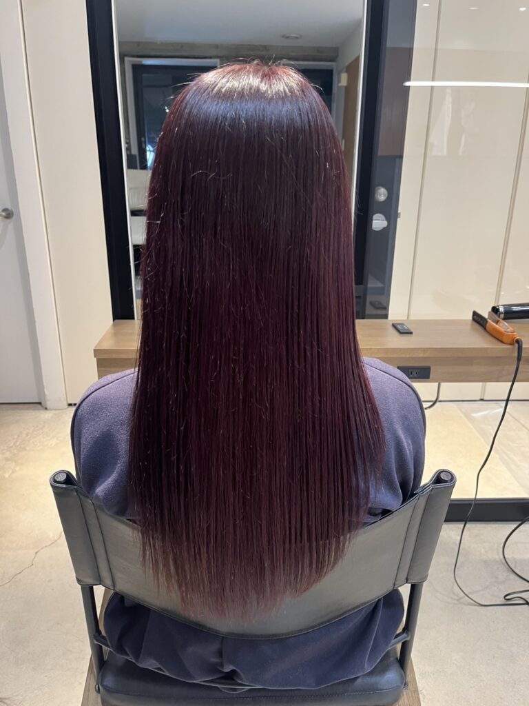 - 深みのあるボルドーカラーで、光を反射するツヤ髪に✨